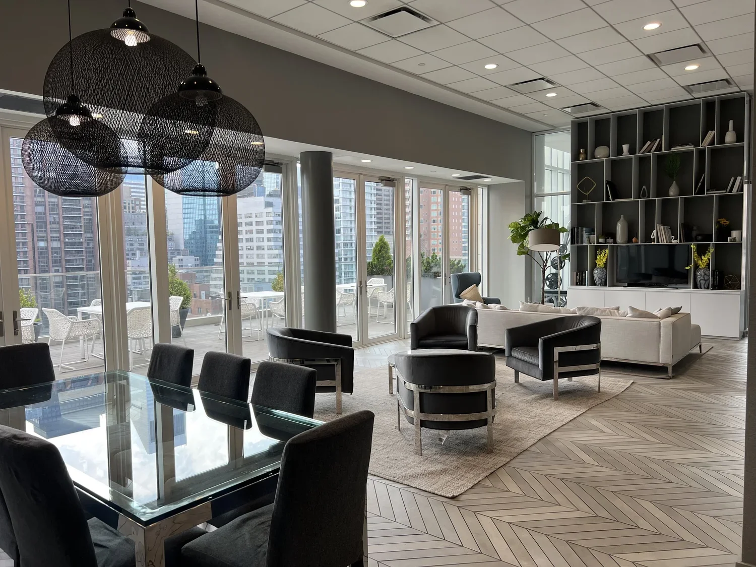 The Clare is a modern, luxury rooftop event space offering a sleek, elevated setting ideal for stylish gatherings, creative activations, or intimate celebrations. With about 800 sq ft of usable event area and panoramic skyline views over Midtown Manhattan, the venue provides a bright, sophisticated backdrop — complete with contemporary lounge/dining interiors, a catering kitchen, and elegant outdoor terrace ambiance. Fully outfitted for events and shoots, The Clare combines upscale design, flexibility, and the exclusivity of a rooftop-level vantage point in a prime Upper East Side location. Capacity accommodates roughly 40 seated guests or up to 75 standing for cocktail-style receptions.